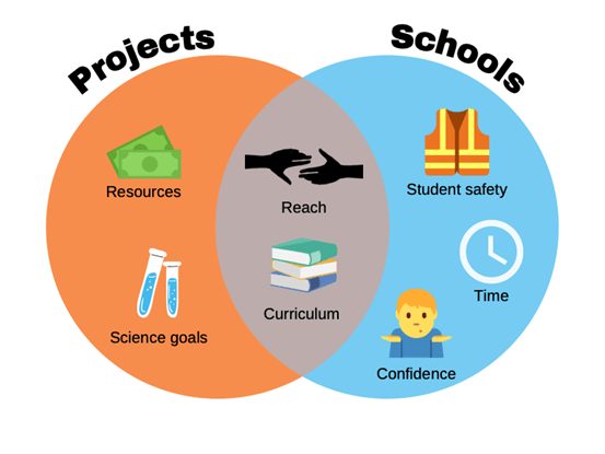 • Citizen science project leaders may not have the necessary resources and knowledge to run school projects