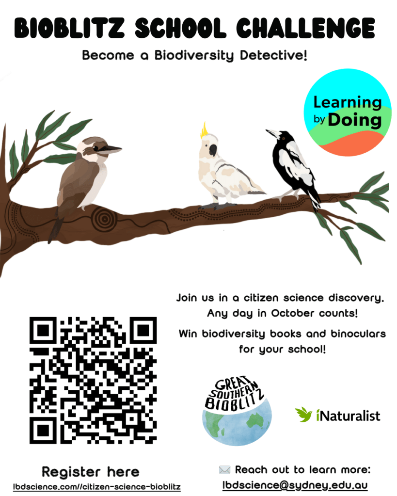📅 The Great Southern BioBlitz runs from 24–27 October, but we can visit your school on flexible dates throughout October. Even if you can’t join during the main event, your students can still take part in a school BioBlitz, build the skills to contribute later, and make valuable iNaturalist observations. Every contribution counts toward citizen science, helping us understand local environments, monitor species, and even make new scientific discoveries.
